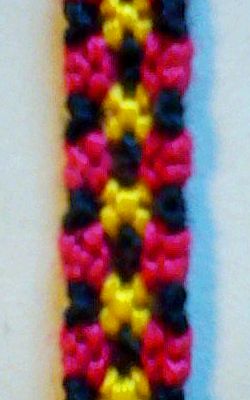 ミサン画廊 no.95(2) 新作完成! 四つ編み(立体視)ミサンガです。 前作の三つ編みミサンガに続き、模様がそのまま四つ編みの糸運びになってます。 糸は8本から10本に増え... |