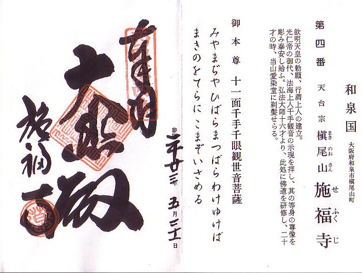 7:30から8:30西国観音霊場4番「槇尾山施福寺(槇尾寺)」で参拝し御朱印を頂きました。