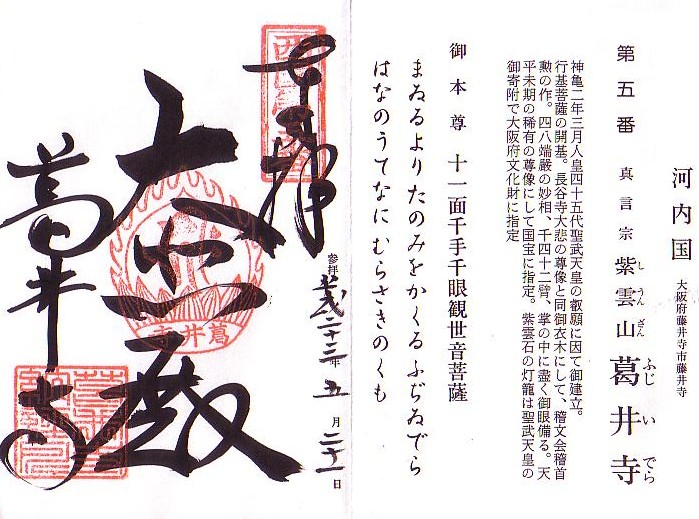10:10西国観音霊場5番「紫雲山葛井寺」に参拝し御朱印を頂きました。