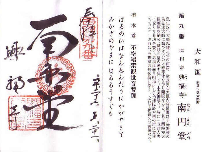 4:15西国観音霊場9番「興福寺南円堂」に参拝し御朱印を頂きました。