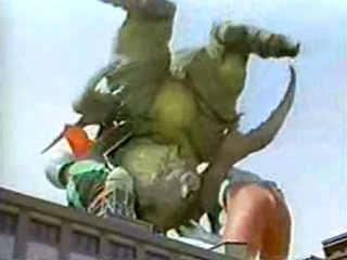 それぞれ闘うのですが、おいつめられた怪獣と怪人は合体!