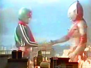設定は、怪獣と怪人が同時に出現、ウルトラマンは怪獣と、ライダーは怪人と