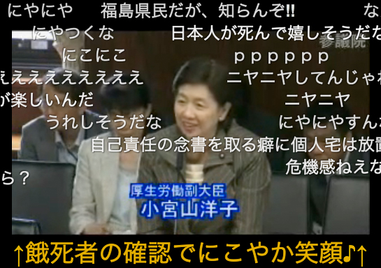 5月26日、小宮山厚生労働副大臣に対して、震災があった「南相馬市周辺で餓死者が出た」という