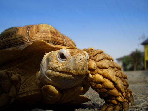 アフリカのサハラ砂漠や、その周辺のサバンナなどに生息している大型リクガメ。