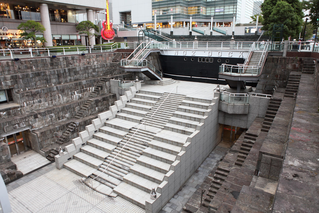 ランドマークタワーの1F部分です。船のドッグで使用してた場所ということで、なんともいえない雰囲気があります。ドッグとは船を修繕したりする場所ですので、多くの工員の人たちがここで働いていたようです。