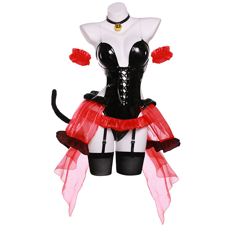 セット内容:レオタード、オーバースカート、カチューシャ、腕飾り、足首飾り、チョーカー、尻尾、猫耳、靴下、手袋