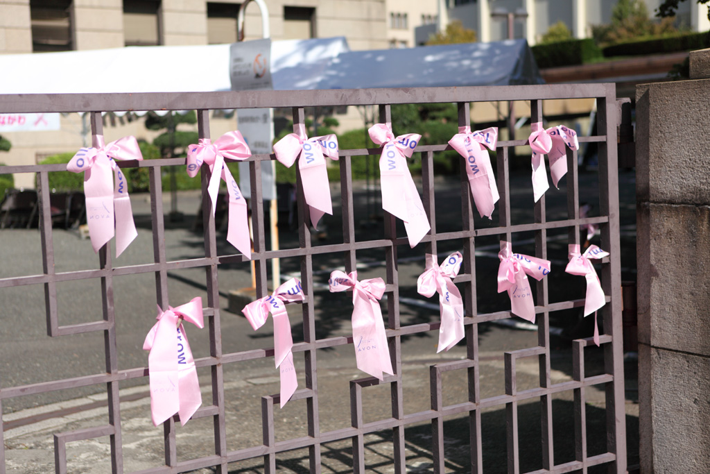 入口の鉄定紋に結ばれていたピンクの布。