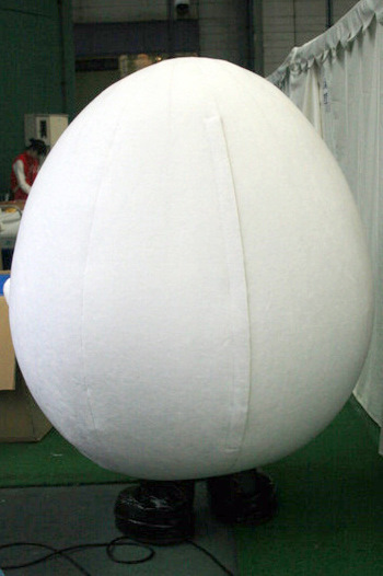 卵の殻の色は曜日によって変化します。着ぐるみでは各色のあいづじげんがくっついています。