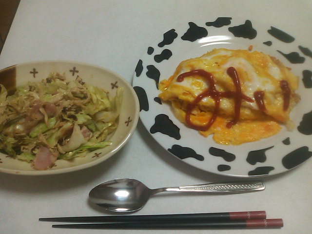 前回のネタであっぷしたオムライスと今回ご紹介した野菜炒めがとある1日の