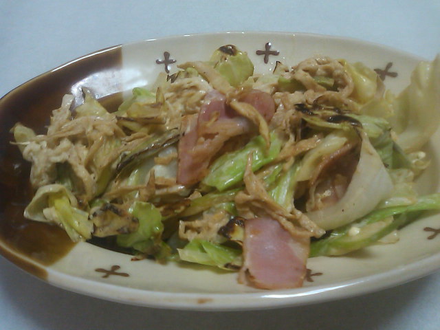 切干大根・ベーコン・アスパラガス・キャベツ・マヨネーズ・しょうゆ・塩コショウ