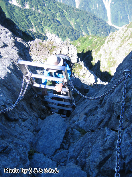 画像左:「よこばい」から続く次の難所。ハシゴもヒヤヒヤもんです。