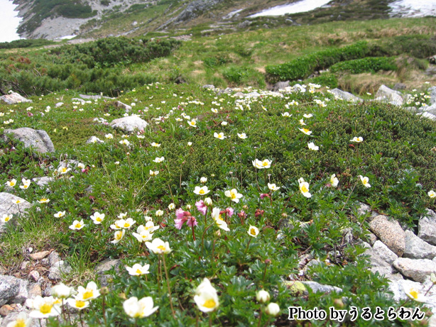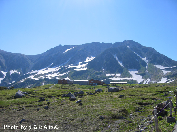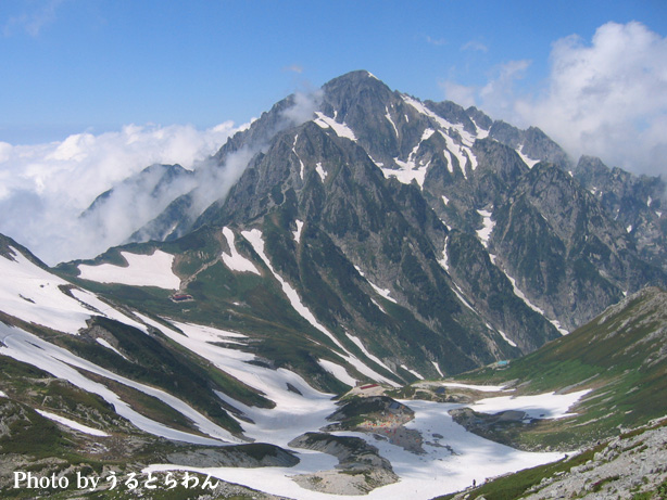 写真左:富士の折立 写真右:真砂岳カール。ここを縦走します。奥に剱が見えます。