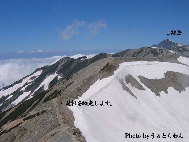 ガンガン縦走して行くと、やがて剱岳が眼前に迫ります。さすが「雪と岩の殿堂」。