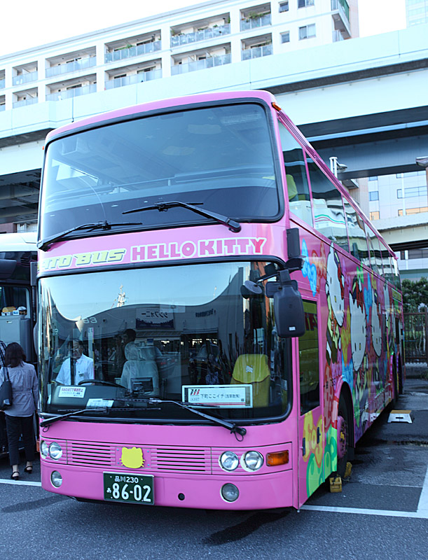 非常にめずらしい、はとバスとハローキティのコラボバス。