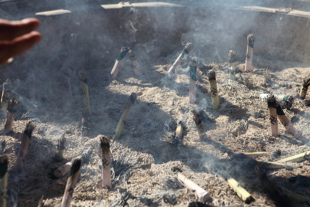 左上にちょっとだけ指をいれたことにより、何をしているかがわかりやすい写真になったと思います。自分が煙をあびずに、カメラが煙を浴びています。