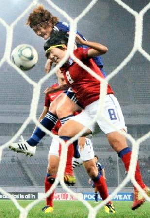 しかし10分 コーナーキックを獲得しキッカーは宮間 ボールは阪口の頭にドンピシャ!