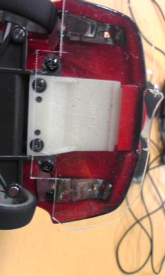 クラフト用のはさみなどで、ボディにそってポリカ板を切り、意味不明のネジ穴にあわせて穴をあけ、ネジをぶち込むw。