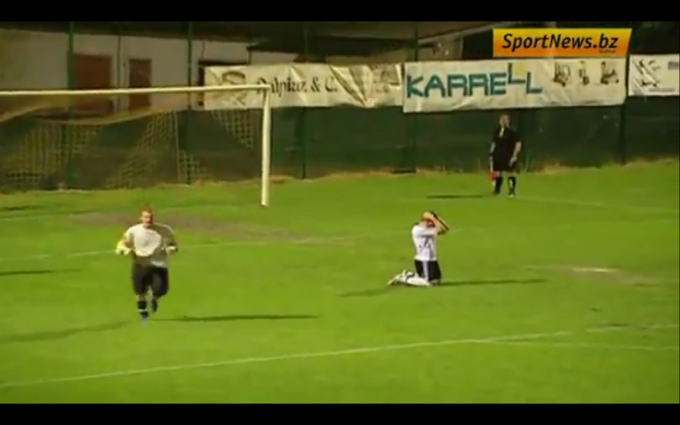 以前 PKを止めたキーパーが狂喜乱舞している間に 回転したボールが再度ゴールへ