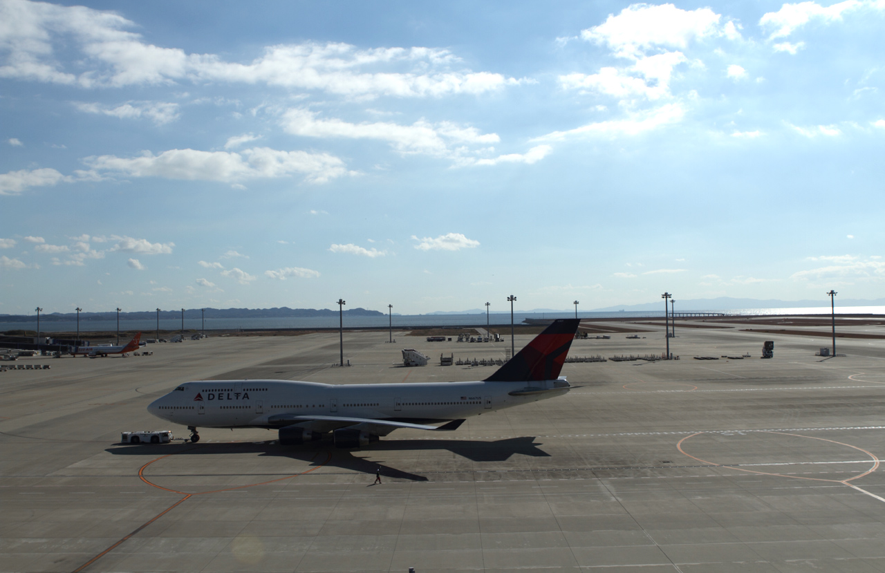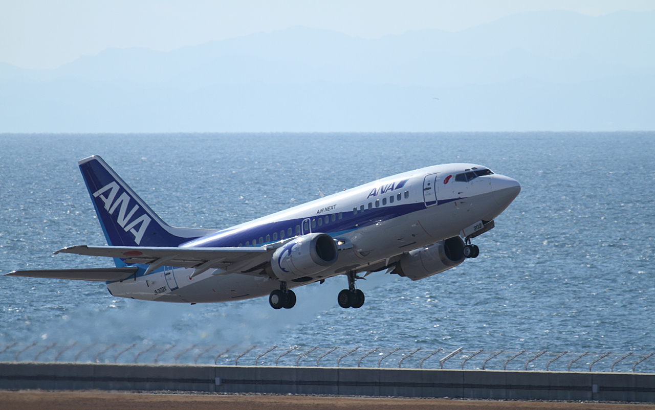 海上空港ならではの画です。ブルーの機体とブルー海の対比が綺麗になっています。