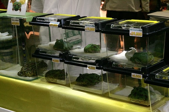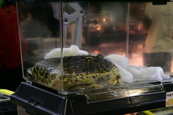 お店に並んだカエルさんたち。皆、とても大人しくて床にぺったりしています。(笑)