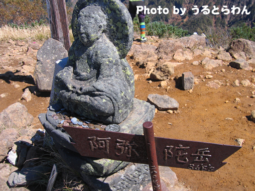 最後は阿弥陀岳(2,805m)。登攀っぽくて面白かった。頂上には石仏がありました。
