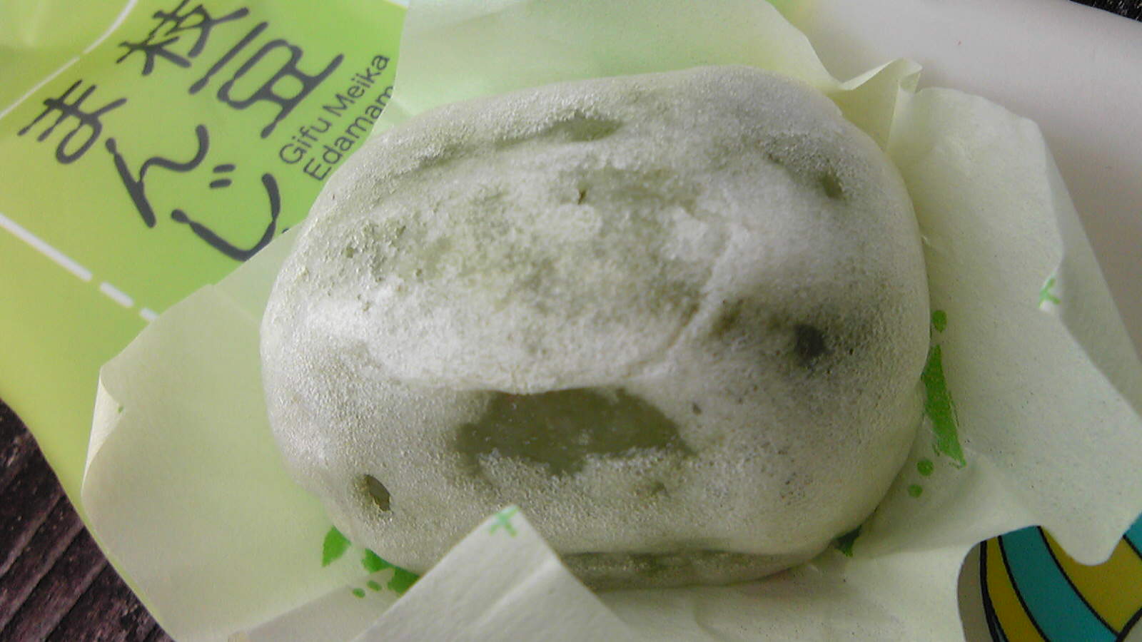 きれいな緑色のビジュアルのおまんじゅうをいただくと、