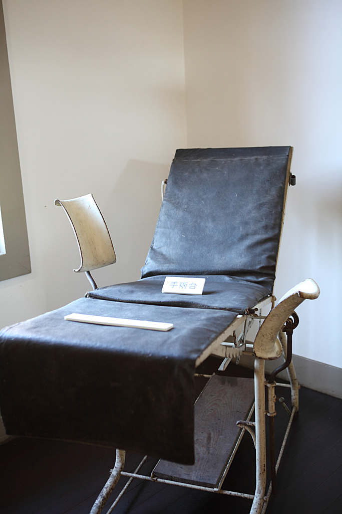 明治時代の手術台です。どんな手術が行われていたかと思うとちょっと怖いです。