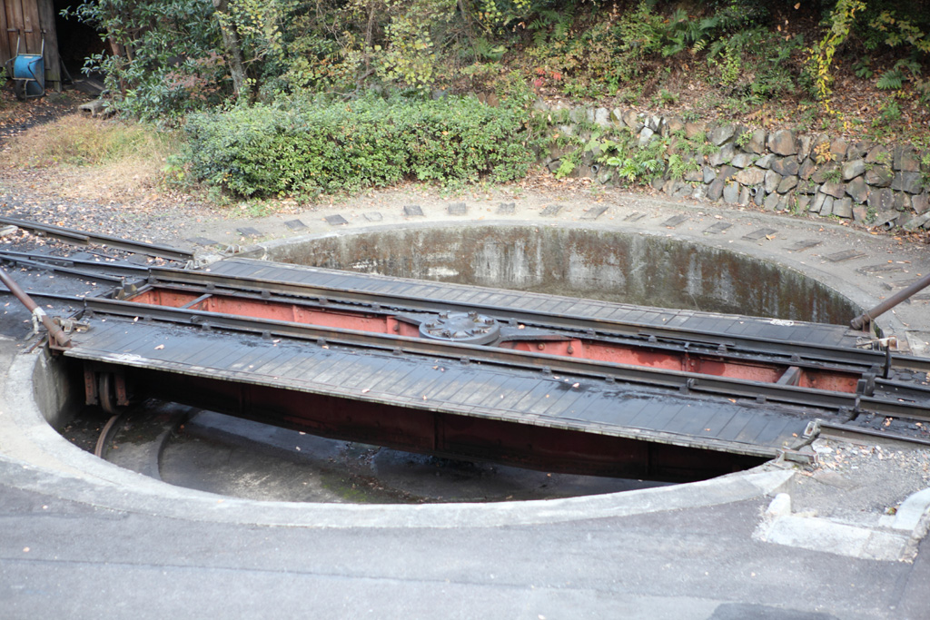 ここで園内を走っている電車の向きを回転させます。ただし人力です。