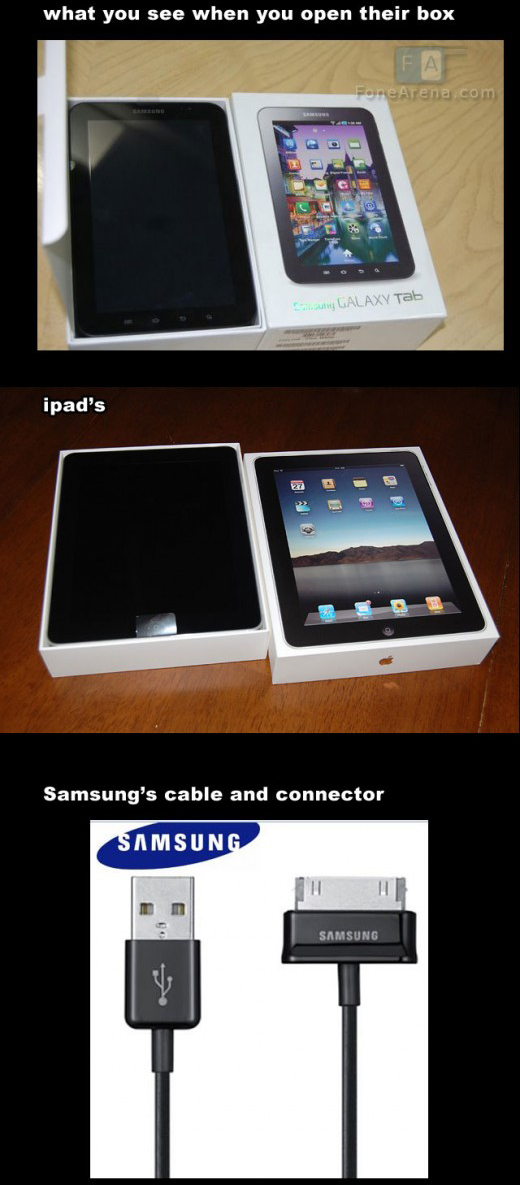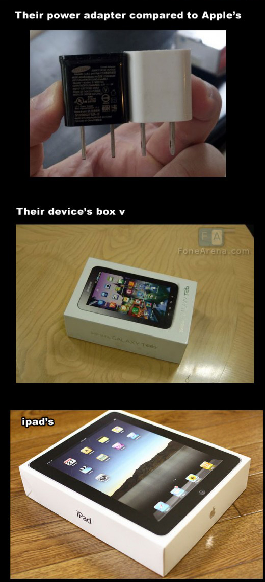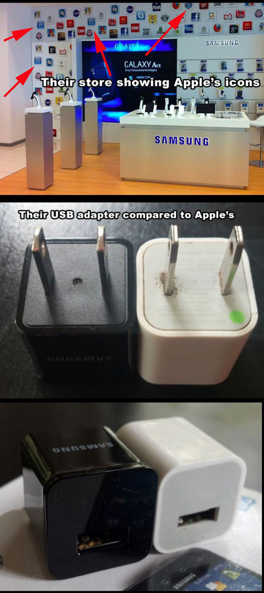 南朝鮮の企業サムスンは、ギャラクシーという米アップル社のiPhoneやiPadの盗作商品を販売し、世界中で訴えられている。最近では、ドイツで裁判所からギャラクシーシリーズの発売禁止命令が下され、オランダでは仮差し止め命令が下されている。