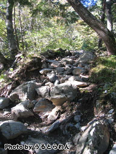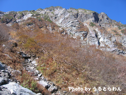 右:二俣から八本歯のコルへ。ここまでがスゴい急登。標高差1,673mですから仕方あるまい。