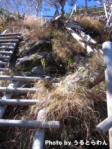 中央:地盤がもろく、登山道が崩壊しており、迂回ルートでいきます。