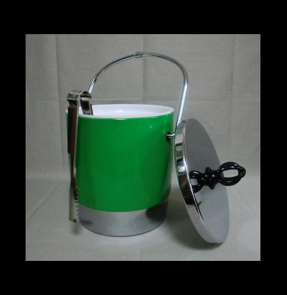 レトロでポップな、アイスペール/トング 表面メタルにペイント仕上げ