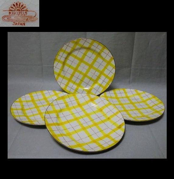 黄色チェック柄プレート/お皿 レトロ&ポップ!