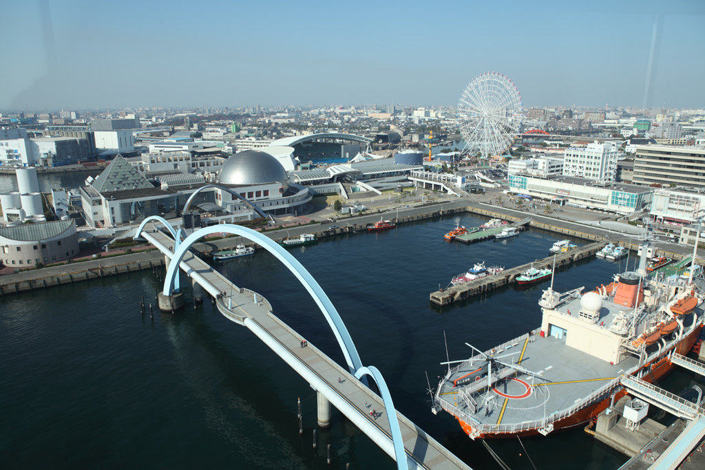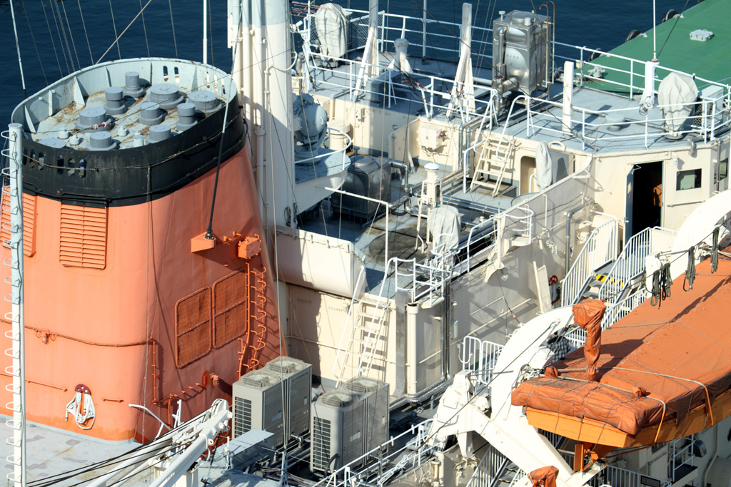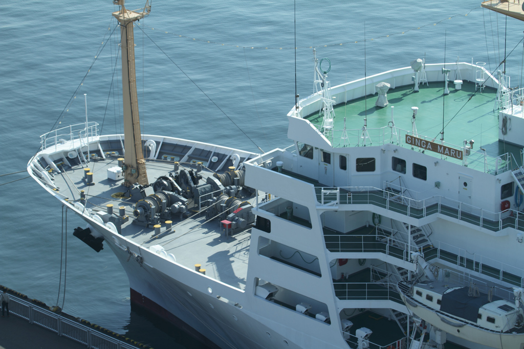 展望タワーからの撮影ですが、たまたま訓練船「銀河」が停泊していました。でかいです。