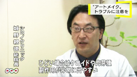 など、見栄えに関する相談も多いということです。アートメイクは針で肌を傷つけるため、医師が行うか、医師の指示を受けた看護師が行う必要がありますが、寄せられた相談の多くは医師がいない美容サロンなどで行われていた可能性が高いということです。(NHKをコピペ)