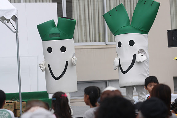 ↑ 【左から】 ねぎっちょ(青)、かさまるくん・かさまるちゃん、バラんまる、ぎせつ丸、ナッチョルくん