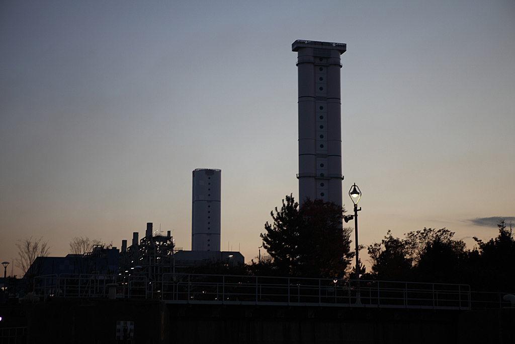 フラワーパークを後に、水族館に帰ります。どっぷりと日も暮れて名古屋港に闇が迫ってきています。