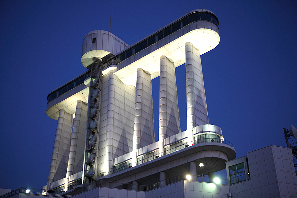 夕日に沈む名港トリトンです。男1人、カメラをもって波止場にいます。なんか寂しくなってきました。