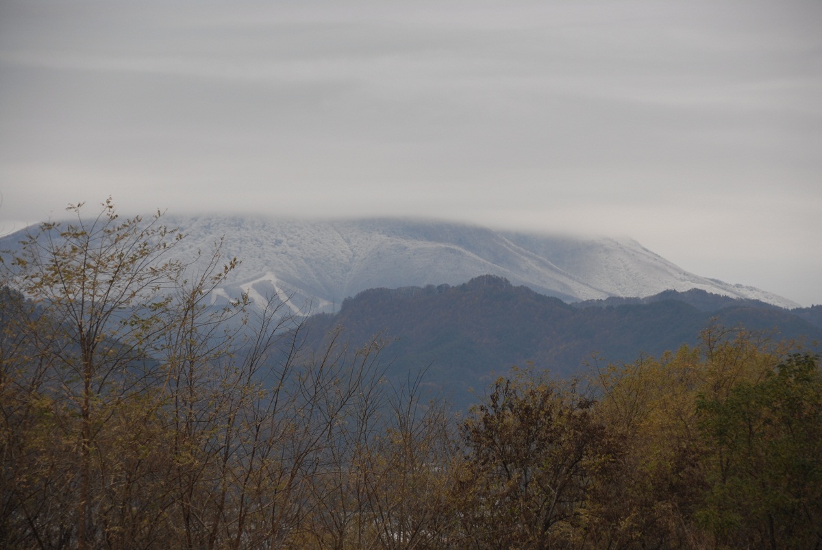 長野市の山「飯綱山」は、標高1000mくらいまで冠雪しました。