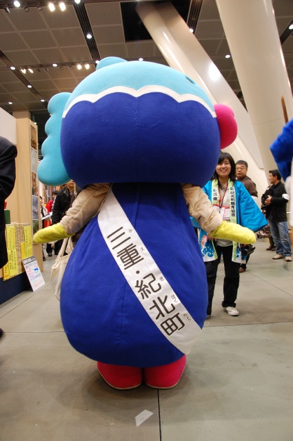 | 2010年12月26日にデビューした紀北町マスコットキャラクター。 紀北(きほく)をもじって「きーほくん」となる。 紀北町は2005年に旧紀伊長島町と旧海山町が合併して生まれた町で、 新町名の知名度向上にも一役買っている。 マンボウのようなかぶりものがポイントで、 横から見ても正面からの顔のように見える不思議なキャラクター。 |