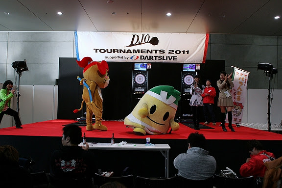 この後、お隣の「ダーツイベント」のステージに我々は出演させていただくことに(笑)