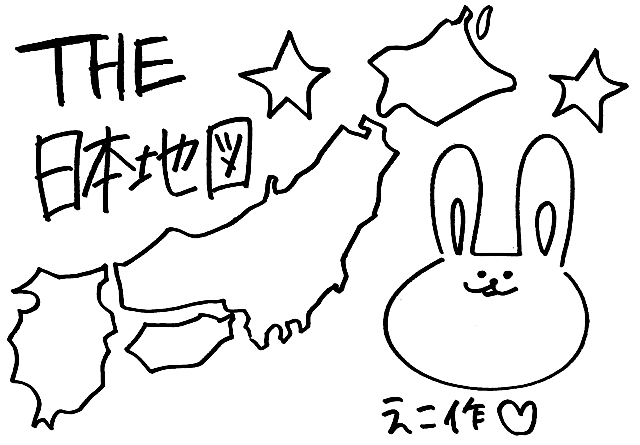 マニアーナ!!チャンネル☆絵心対決 ギャラリー 第一回 出題:日本地図 日本地図 正解画像 1位 えこ画伯 なんとなく一番日本らしいです、沖縄が無いのが残念ですが堂々の1位 2位 まゆみん画伯 太平洋側が一直線でなければ1位でした沖縄も有ります。 3位 みぃ画伯 もはや画伯は別次元! マニアーナ!チャンネル 絵心対決【お絵かきクイズ2】 まゆみん画伯 えこ画伯 みぃ画伯 マニアーナ!チャンネル 絵心対決【お絵かきクイズ1】