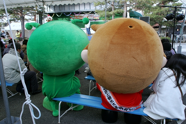 あれれ?お客さんにまぎれて、ゆるキャラさんが座っています(笑)