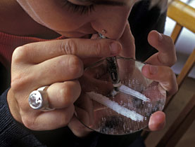 コカインはごく少量でも生命に危険な薬物です。主に鼻の粘膜から吸いこんで摂取するため鼻が炎症を起こし、肺も侵されます。この麻薬のもっとも特徴的な中毒症状には、皮膚と筋肉の間に虫がはいまわるような感覚が起こる皮膚寄生虫妄想というものがあります。また、脳への影響も大きく、痴呆状態となり人間として生きることそのものを放棄することになるのです。これらの他にも妊娠中のコカイン摂取が子供に及ぼす影響(コカインベビー)も重要な問題です。