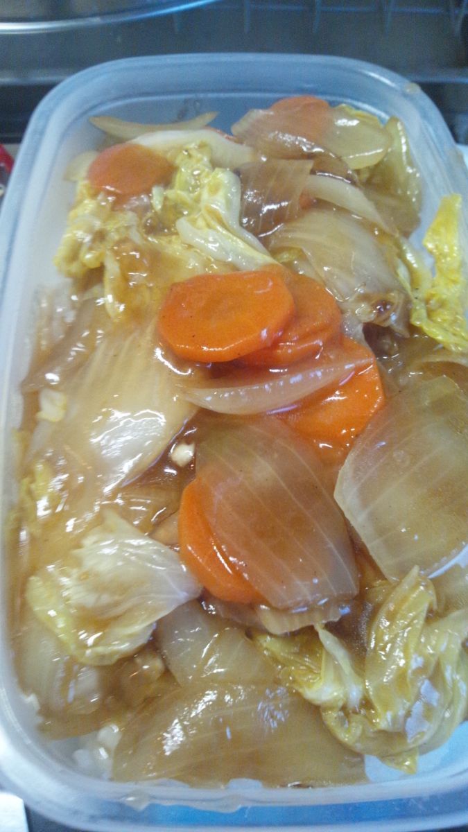 材料:白菜・人参・玉ねぎ・豚肉・塩こしょう・鶏ガラスープ・サラダ油・