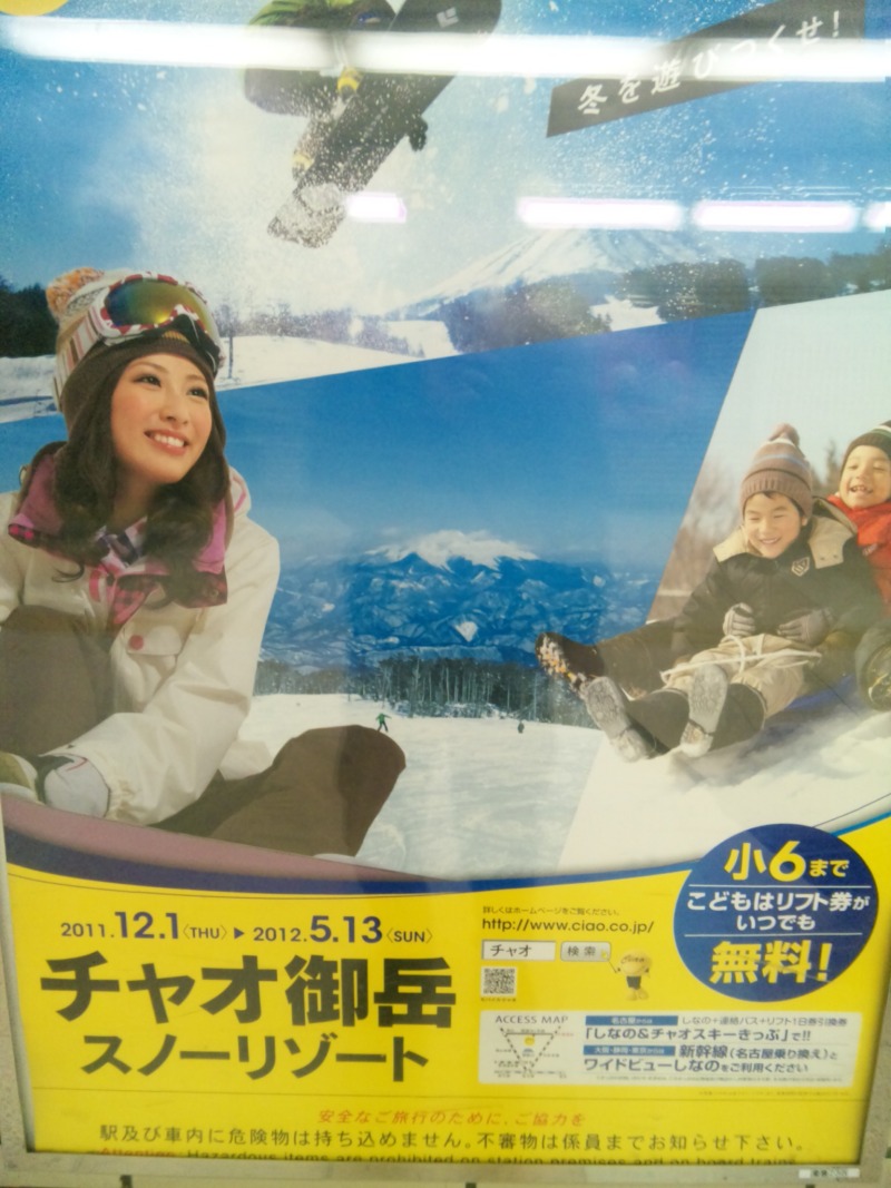 JRに昨年末くらいから貼られている、チャオ御岳スノーリゾートのポスターの女の子が可愛くて気になってたんだけど、検索してみたら藤野千暁ちゃんという愛知県在住のモデルだと判明!カワイイ〜♪♪ほんの少し