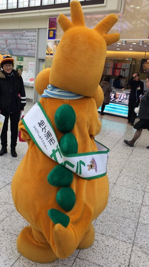 | 袖ケ浦市の坂戸の森で生まれた恐竜。袖ケ浦でうまれたので「ガウラ」と名づけられた。 妻のソデリー、息子のウラリーがいる。2010年に着ぐるみが作られた。 |