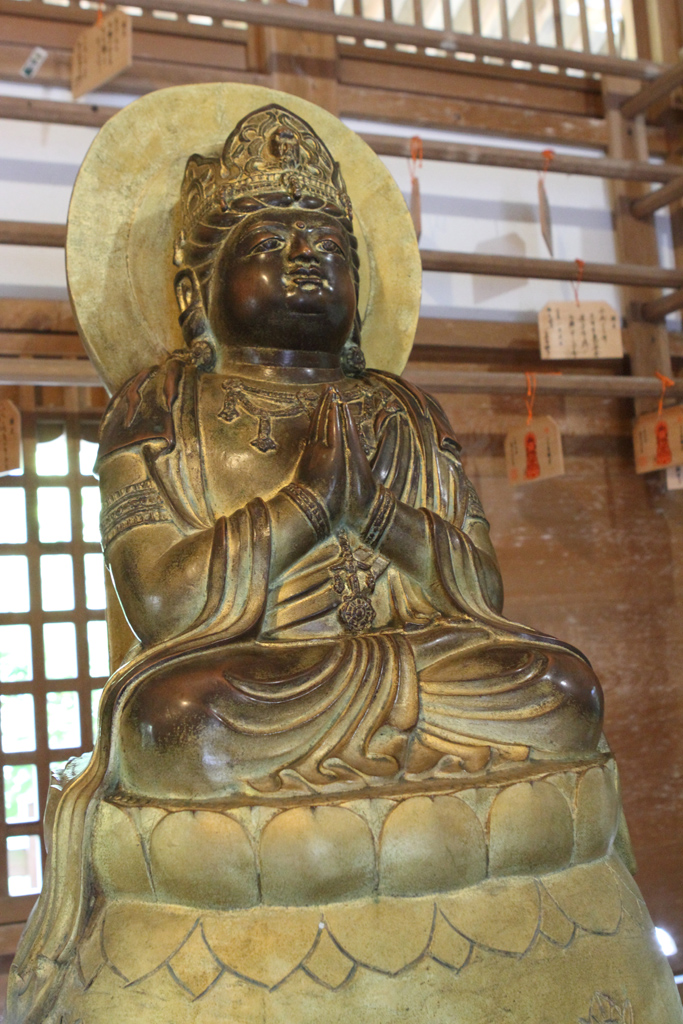 そしてこれが「ふれあい観音」やはり、頭が一番触られているようです。こういった観音様を撮影するときは、一礼して、撮らせていただきますという気持ちを忘れないようにしましょう。