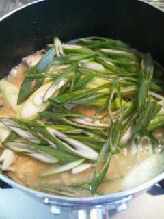 4 最後に魚臭さを消すためにネギを大量に入れます。