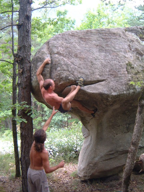 またロッククライミングですから、本物の岩場を登ることもします。通称「外岩」と言います。これは各地にボルダリングスポットがありますので、いずれ紹介したいと思います。ただ外岩にはジムのようにマットが敷かれているわけはありません。自分たちでクラッシュパッドなどを用意する必要がありますし、いきなり初心者だけで行ってやるには危険が多いと思います。外岩にもグレードが設定されていて自分の実力に合った岩を登ることが可能です。ビギナーにも登れる岩もありますので、よく分かっている人と一緒にだったら外岩から始めの一歩を踏み出すこともアリかと思います。シューズくらいは買っていく必要がありますが。